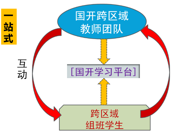 CROSTEFA模式即由总部整合办学体系的优秀师资,组成跨区域教师团队,通过国开学习平台,直达跨区域组班的学生群体,从而形成教师团队一站式的辅学和学生群体一站式的学习。“辅学”主要是指跨区域教师团队全程为学生提供优质的学习支持服务,并不强调“讲”。基于教师团队,严抓过程,让真实的学习发生,保证教育质量。打破“电大”基于行政区划的藩篱,跨区域整合优秀师资,形成合力;学生群体也突破行政障碍,形成合力。真正实现了开放的教育,解决了基层有学生无教师和有教师无学生的困境,促进教育公平。随着在中国大学MOOC平台开展教改探索,该模式也被赋予了更广的涵义,即不仅限于国开体系内的“跨区域”,更拓展到“跨校”甚至是“跨国”的团队在线辅学。