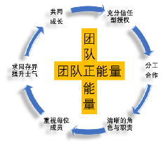 坚持“团队正能量”指导思想,即坚持充分信任型授权、合理的分工合作、清晰的角色与职责,充分重视每位成员,在团队发展过程中求同存异,注意不断提升士气,最终实现共同成长。