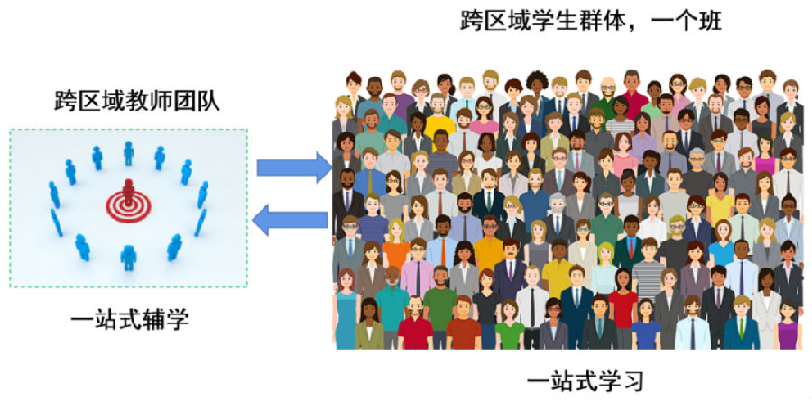 注:教师形成一个团队一站式辅学,学生形成一个群体一站式学习,师生、师师和生生强互动。