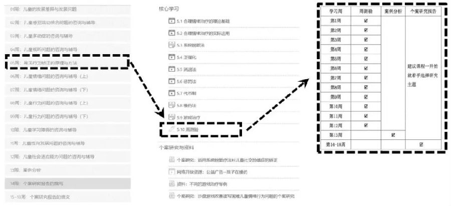 “小步子原则”是行为主义心理学著名代表人物斯金纳提出的编写程序化教材的主要原则。将学生的学习目标分解为具有逻辑联系的许多“小步子”,由完成一系列“小步子”达到实现终极目标。“小步子”的目的在于控制学生的学习过程,让他们及时做出反馈,以降低错误率。我们将这一在传统教育领域广泛应用的原则,同样应用到在线课程的设计与实施中。通过将所要学习的内容进行拆分,细化到每一周学习的具体的内容与小任务,让学生一小步一小步达成小成就,及时反馈纠错、体验成功,一小步一小步达成最终的大成就。这样对学生来说,由简单到复杂,难度逐步上升,一周解决一个小问题,更容易获得成功,不会因为一开始太难,面前的山太大就轻易放弃学习。