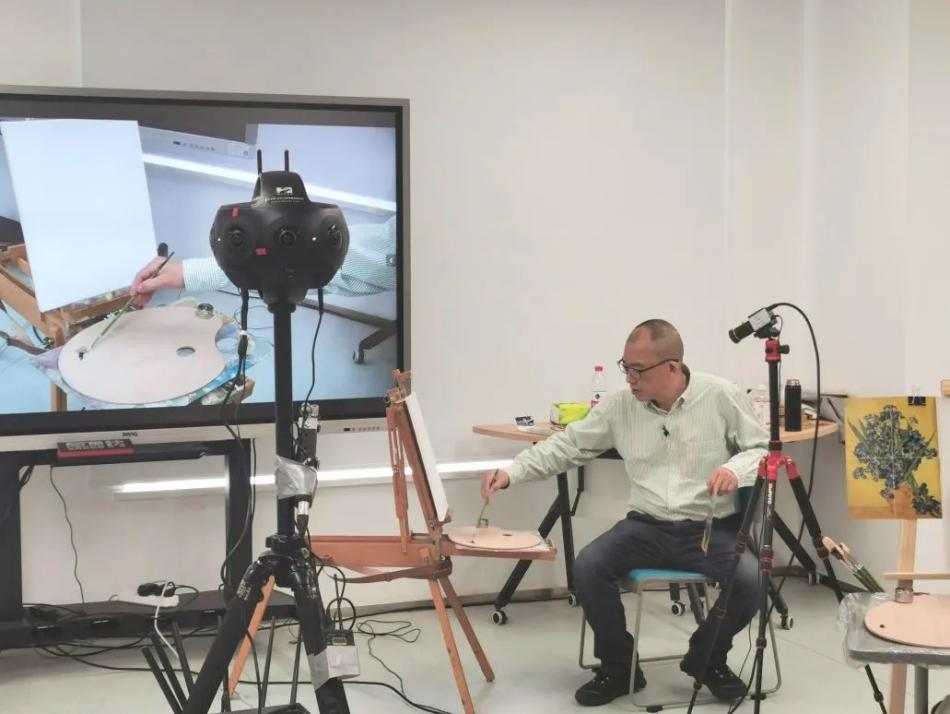 “在线油画公社”品牌主持人为球王会官网艺术学院教授唐应山,他根据自己三十多年的实践教学,逐渐形成一套基于远程、面向零基础美术爱好者的多模态油画教学模式。自2018年开始,唐应山教授陆续推出《零基础油画入门》《油画进阶课》《油画大师课》等系列视频课程;推出直播课程《油画风景写生》《油画人物课》《油画静物课》等;开展系列讲座《色彩与生活》《建筑的色彩之美》《油画鉴赏》《画家思维》等110多场。各类课程通过球王会官网5分钟课程网、小鹅通、人人讲、小红书、快手、B站、视频号等新媒体平台推出。2023年首次采用VR直播技术,在国家老年大学魏公村校区推出《向大师致敬》油画课,30名面授班学员与6万名在线学习者同步学习,线上学员获得了沉浸式学习体验,实现了“小规模线下带动大规模线上”的教学目标。