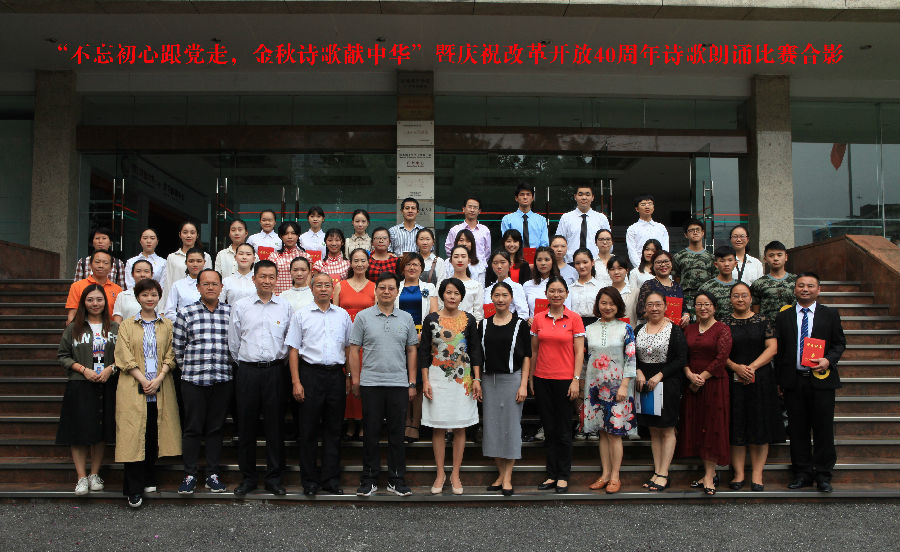 为贯彻和落实党的十九大精神,培育和践行社会主义核心价值观,丰富校园文化生活,11月16日,广州电大举行“成功之路梦想起航”素质教育系列活动之“不忘初心跟党走,金秋诗歌献中华”暨庆祝改革开放40周年诗歌朗诵比赛。来自广州电大系统9个教学单位的20支参赛队伍近40位同学参加比赛。党委副书记陈雪曼以及相关部门负责人,系统各单位教师和学生共100余人现场观摩比赛。