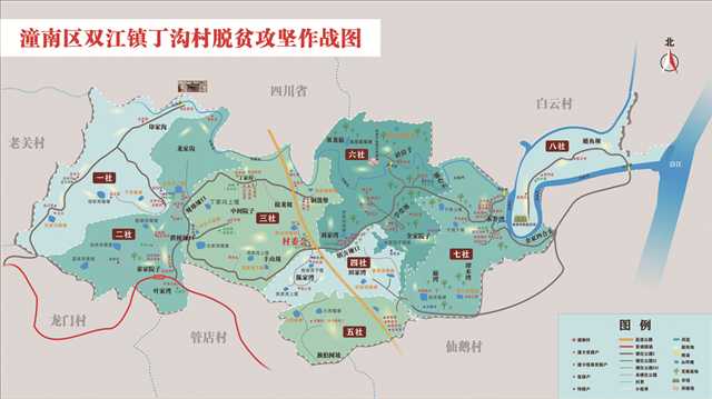 用红色、绿色等不同图例,清楚直观地标记着全村建卡贫困户、低保户、特困户、河流、道路、花椒基地等,前不久,一张精心绘制的脱贫攻坚作战图,挂在了潼南区双江镇丁沟村便民服务中心。