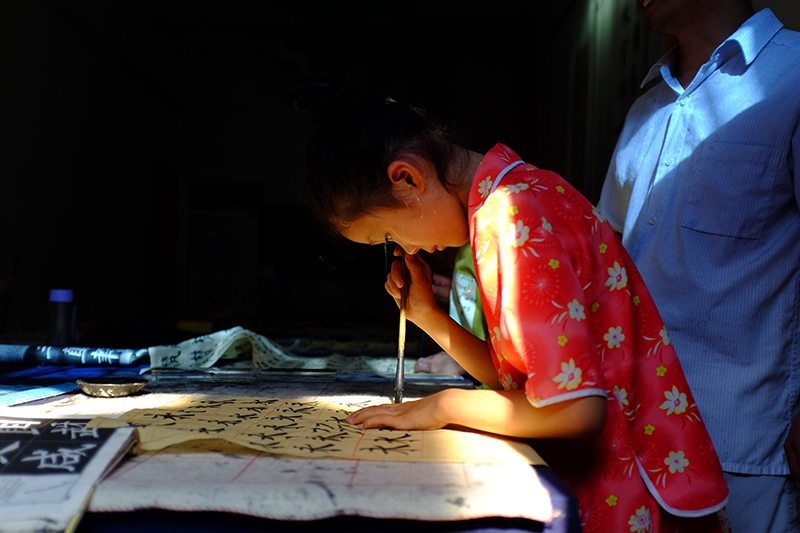 走亲戚抢拍的一个镜头。爷爷指导孙女练习书法,孙女练得很认真,爷爷看着很开心
