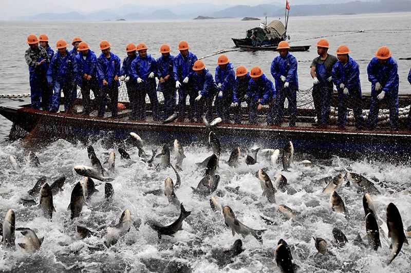 黄山太平湖推出巨网捕鱼项目,第一次拍遇上鱼儿跳舞,在这个季节,幸福,一图胜万言。