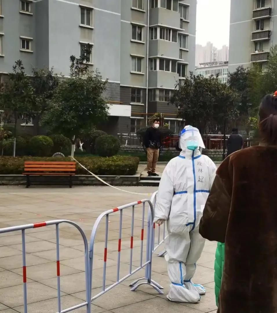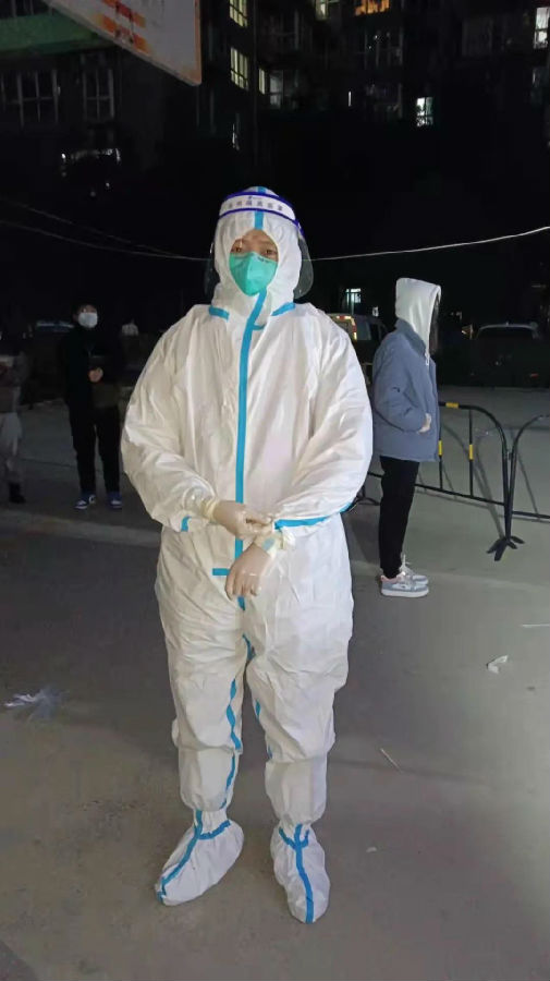 2021年12月27日,球王会教师段林超在居住社区作为志愿者参与西安市新一轮核酸检测工作。