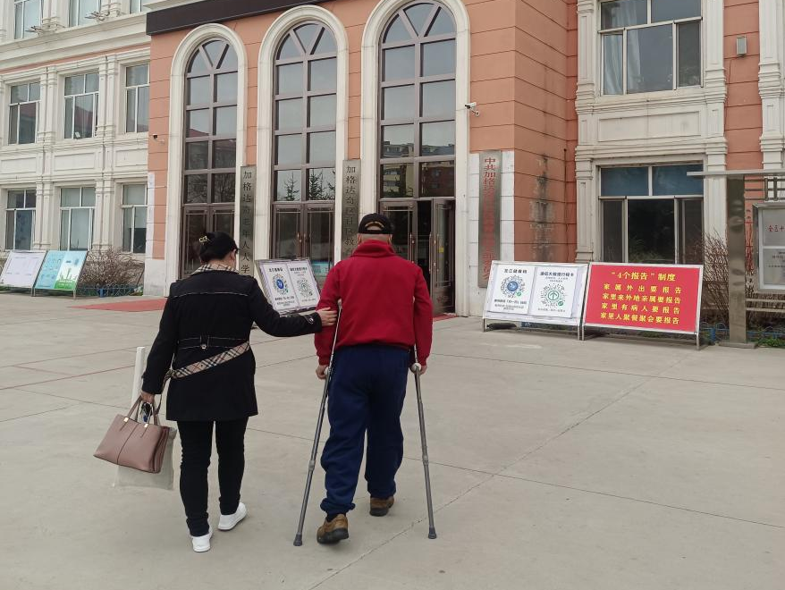 周岩老师深知这次受伤会直接影响本学期教学进度,所以,他经过短暂几周休养,于2022年4月7日在爱人的陪同和搀扶下,周岩老师拄着双拐又回到了老年人大学的讲台上。