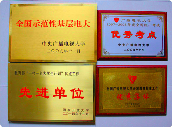 ——全国电大“信得过考点”、全国首批“示范性基层电大”、全国电大“优秀招生集体”、“教育部‘一村一名大学生计划’”先进单位、“青岛市精神文明标兵单位”等。