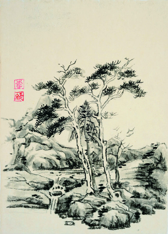 李筠 溪山风雨图册之一 纸本水墨 2018