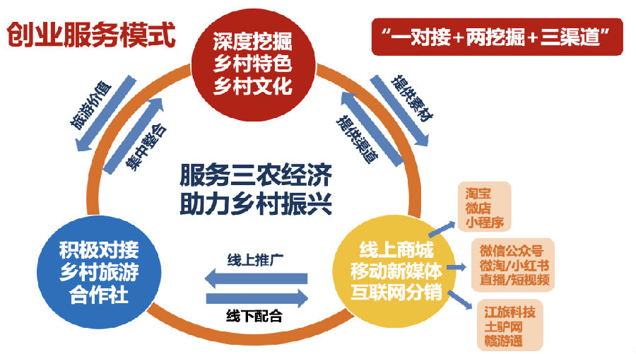 在对长溪村的项目培育过程中,陈亚薇带领的团队决定以乡村文化为发展视角,以乡村特色和文化为立足点,采用“一对接+两挖掘+三渠道”的帮扶模式,即积极对接乡村旅游合作社,深度挖掘乡村独有特色和文化,通过线上商城、移动新媒体、互联网分销三大渠道,打造线上乡村文化爆点和乡村特色IP,实现国家大力提倡的“一村一品,一村一韵”新农村建设,引流线上粉丝至实地旅游和打卡消费,以乡村旅游同时带动相关农产品和文化衍生品的销售,最终实现农民提质增收、乡村文化传承与乡村振兴的多方共赢效应。