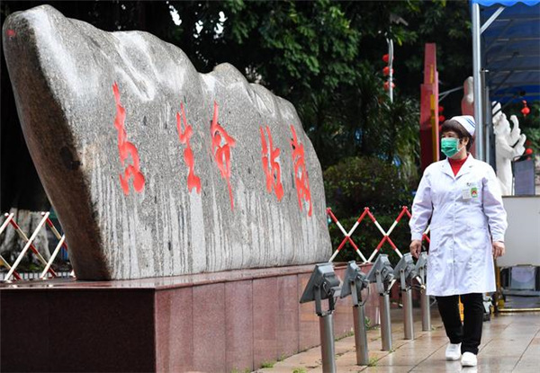 2月21日,杜丽群在广西南宁市第四人民医院大院内。