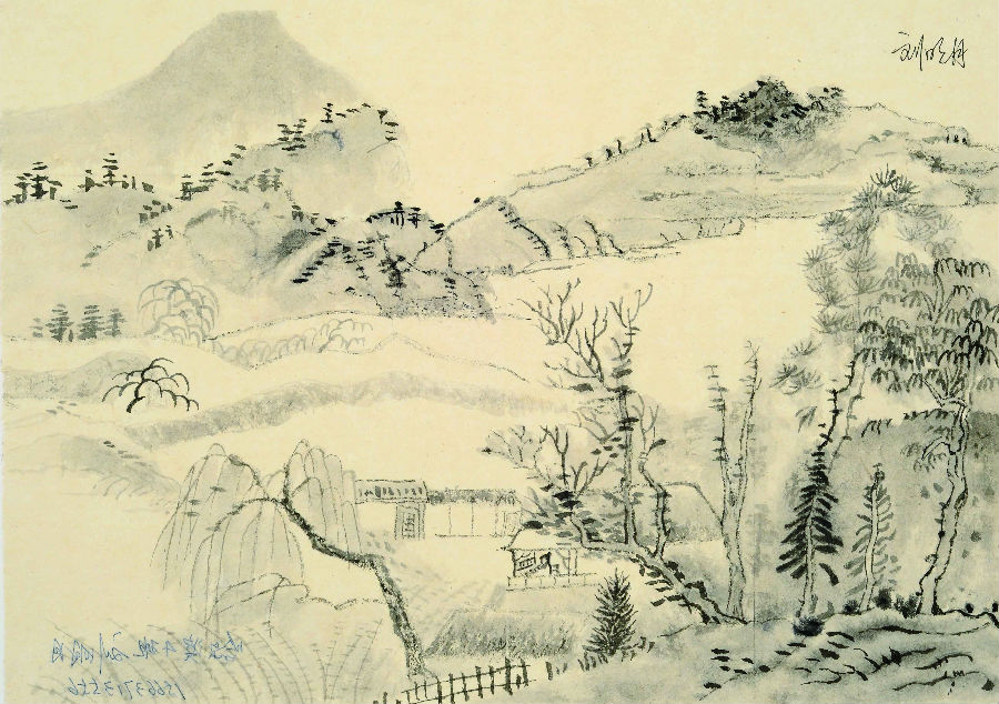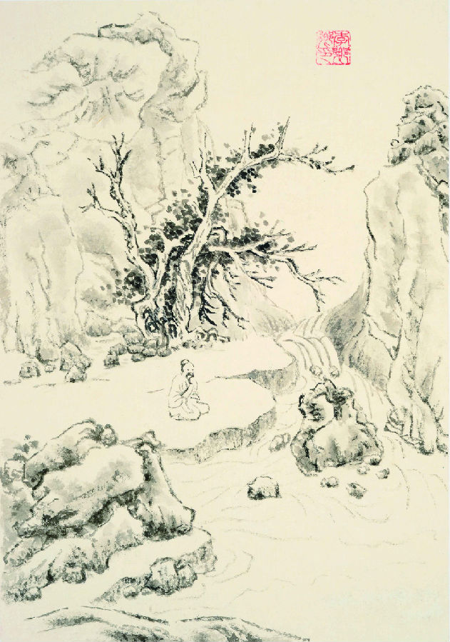 刘丽昧 拟沈周画意 纸本水墨 2018