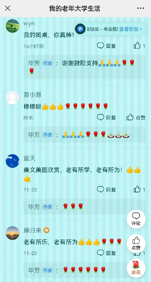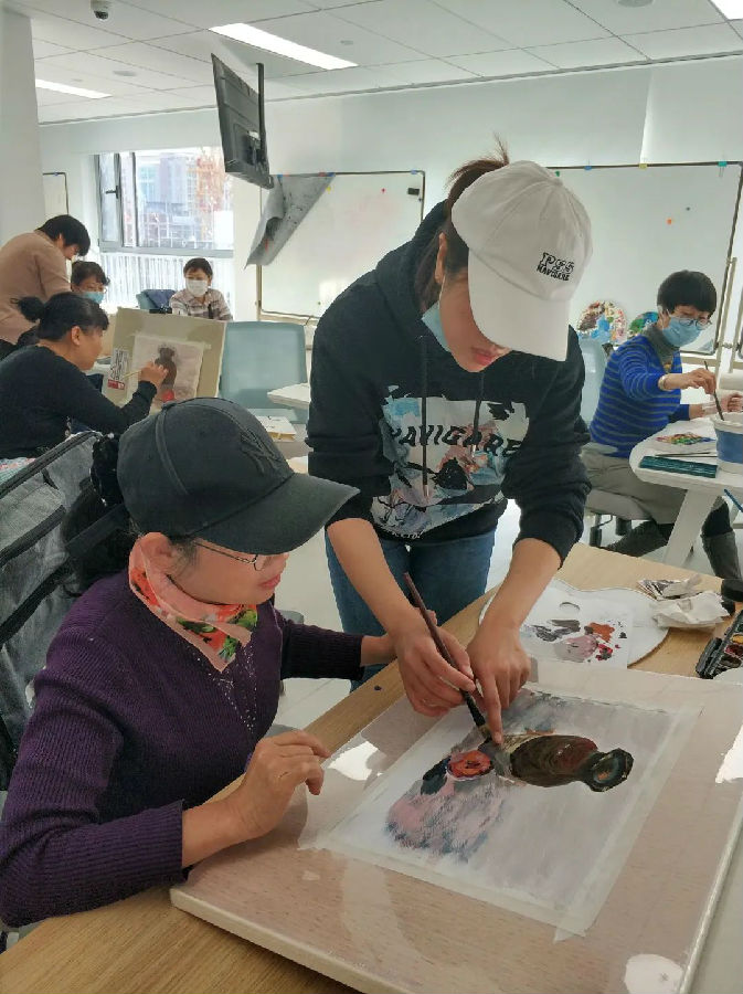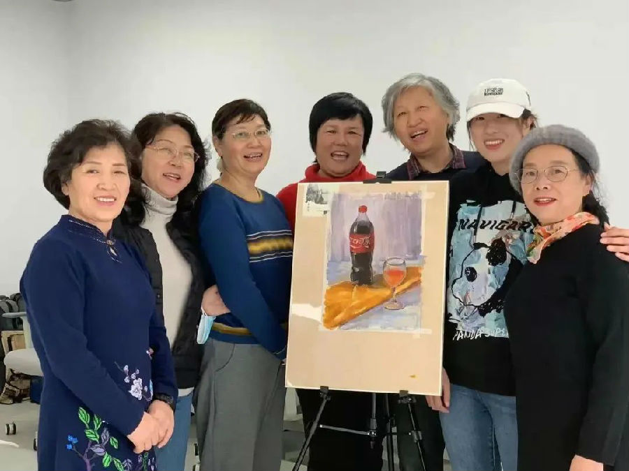 吕华芳在此基础上开始了自己的写作。“白发求知进学堂,描山画水落玄香。吾师挥笔龙飞舞,一纸丹青藏夕阳。”一首吕阿姨原创的《学画》,表达了她学习画画的心情。
