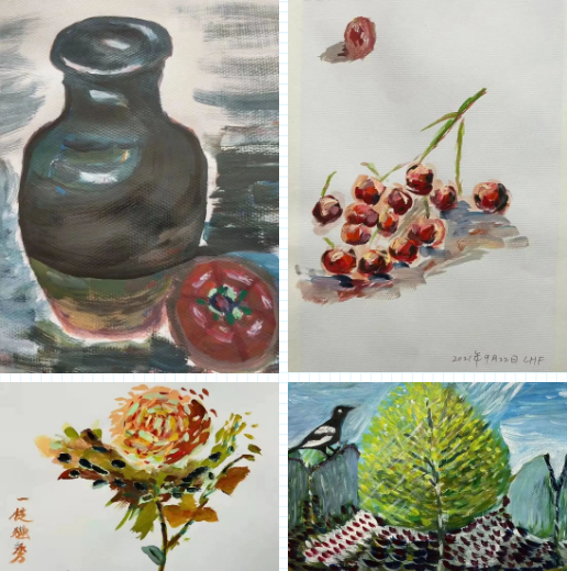 “从老家来到北京,繁华的都市,喧闹的人群。我却感到无比的孤寂,没有认识的人,没有可干的亊。孩子给我报了国开老年大学水粉班初级班。”