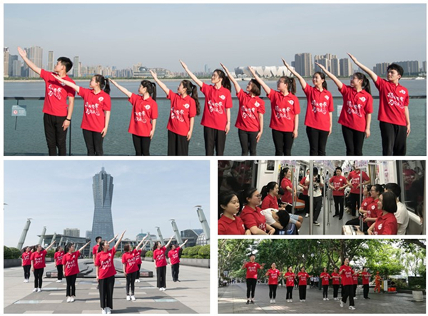 “灵活的手指万里挑一,点赞的青春绽放芳华。”此次“快闪”活动的成员来自浙江电大,从萌生想法到活动成型共花了一个多月时间,排练数十场。他们通过改编手语,参考学习抖音等APP上传的手指舞视频,再融合自身创意,根据《光荣啊,中国共青团》歌词及风格设计手指舞动作,采用与“快闪”行为艺术相结合的表现形式,欢度了一个充满青春元素、活力满满的五四节。