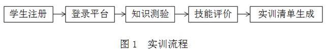 学生首次使用该网络实训平台,需要按下图1的实训流程进行注册、登录、测验、评价等过程后,拿到系统自动生成的实训任务清单。