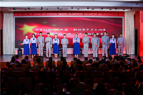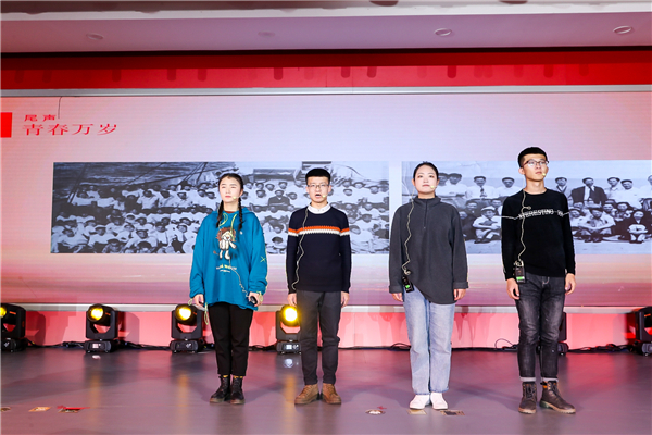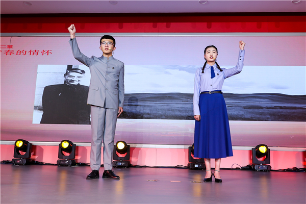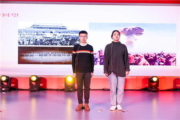 在大家的翘首企盼中,“在那遥远的地方”的歌声缓缓响起,宣讲团的同学们登场了。围绕“青春的回望”“青春的祖国”“青春的情怀”“青春的奉献”“青春万岁”五个篇章,他们以音画情景式宣讲的方式回顾了“两弹一星”奋斗者的青春故事,声情并茂地讲述了以钱三强、钱学森、郭永怀、邓稼先为代表的广大科学家风餐露宿、不计得失,在艰苦条件下为祖国国防事业默默奉献的感人事迹,生动阐释了“热爱祖国、无私奉献、自力更生、艰苦奋斗、大力协同、勇于攀登”的“两弹一星”精神,发出了“青春无悔、青春万岁”的新时代最强音。同学们发自肺腑的深情讲述和富有感染力的舞台表演感动了在场的每一个人,赢得了经久不息的掌声。宣讲会最后,全场起立高唱《歌唱祖国》,在慷慨激昂的歌声中,宣讲会落下帷幕。