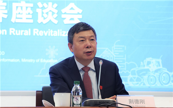 荆德刚表示,“一村一名大学生计划”项目在聚焦脱贫攻坚,培养农村高素质本土人才,优化农村基层干部队伍,带动农民创业致富,提升学校社会影响力等五个方面取得了一定成效。项目体现了理论与实践,劳动与教育,发挥球王会官网自身优势与当地经济社会实际,脱贫攻坚与思想政治教育的紧密结合。他强调,要集中优势力量做好脱贫攻坚与乡村振兴的有效衔接,一是成立乡村振兴学院,实现脱贫攻坚与乡村振兴有序衔接;二是发挥“互联网+”教育优势,加快现代信息技术与教育的深度融合;三是聚焦地方需求,增设乡村振兴相关学科专业;四是调动体系积极性,打好教育乡村振兴总体战。