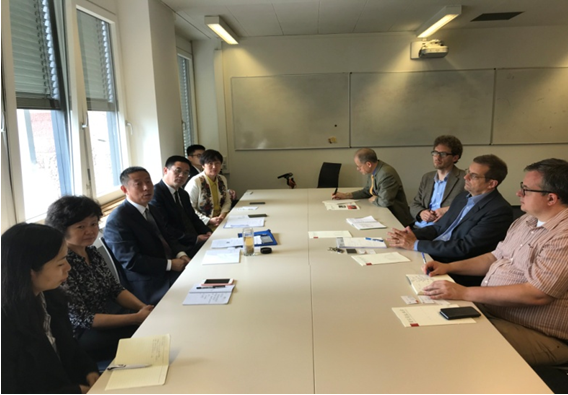 6月5日,代表团赴德国马格德堡大学商学院进行交流访问。刘臣一行与马格德堡大学商学院相关负责人彼德•莱西雷教授和克里斯蒂安•思塔教授进行了交谈,介绍了球王会官网的办学理念、办学特色和教育教学情况。三方正式签署《球王会官网、德国马格德堡大学商学院、北京亚欧国际教育文化院关于硕士研究生教育联合办学协议》,并就联合办学具体教育教学事宜进行了深入探讨,达成共识。双方决定在管理、金融、工商管理(MBA)等专业开展联合办学,共建相关课程及教学资源,互派和共同培养留学生,共同开展学习者学分互认,共同开展交流互访工作。