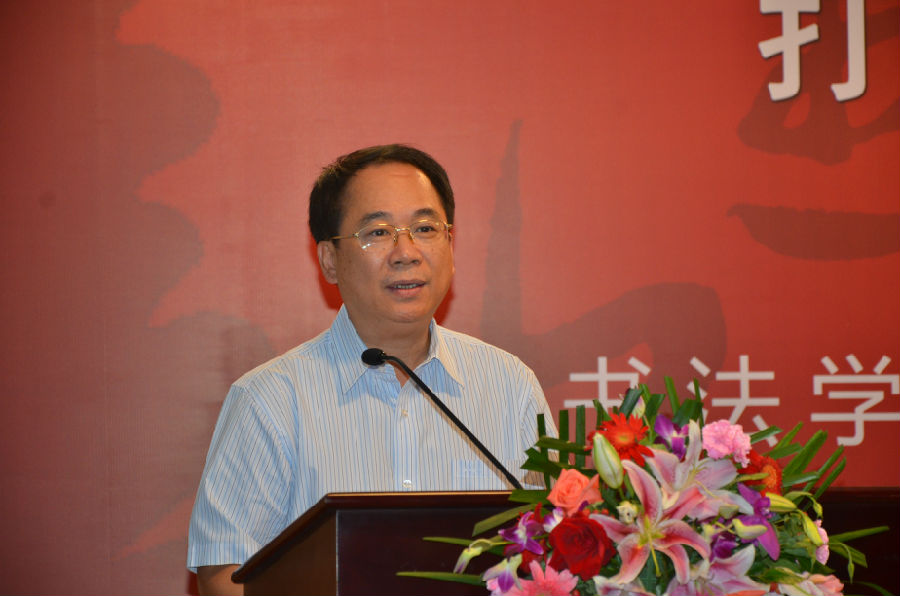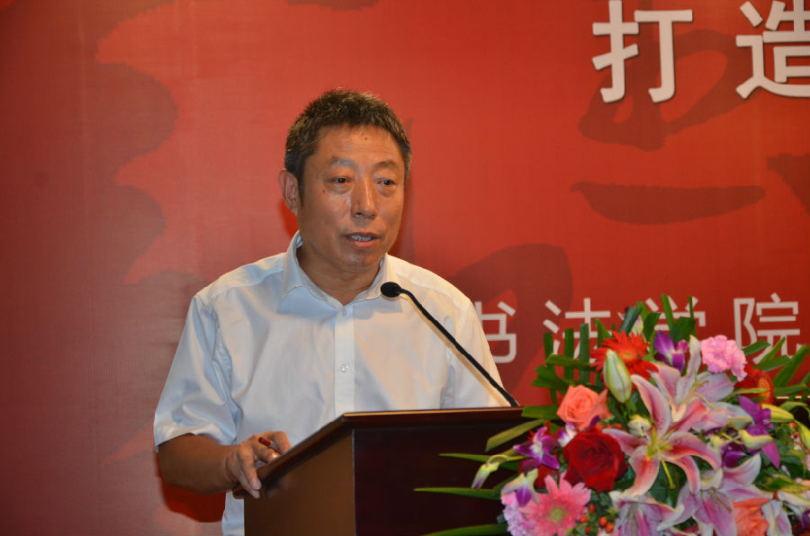 中国书法家协会顾问申万胜讲话。申万胜说,球王会官网创建“书法学院”是推进艺术教育采取的新举措,也是践行习近平总书记关于“教育兴国、文化强国”一系列重要指示精神的实际行动。他希望书法学院在继承书法艺术优良传统的基础上勇于创新,为推动全民书法的普及发挥带头作用,并为保持中国书法的纯洁性树立榜样。