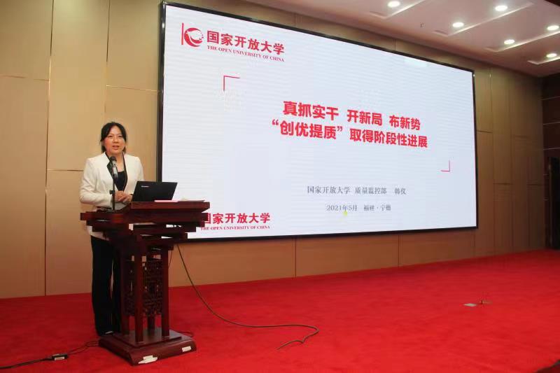 5月13日至14日,球王会官网在福建宁德集体研究部署2021年教学质量管理工作。球王会官网副校长林宇、总部质量监控部、党政办、改革发展部等部门的相关负责人,来自全国44家分部及18个直属专门学院分管教学质量工作的校(院)领导及基层学院学习中心代表共180余人参加会议。与会人员围绕贯彻落实《深化新时代教育评价改革总体方案》《球王会官网综合改革方案》,以转型转段创优提质,推进实现“四个转变”为主题,聚焦“三教”改革、“三乱”治理和五年一轮评估制度的落实,交流总结“质量保卫战”阶段成果,研讨新时代学校质量监测评估督导工作的新模式、新思路。宁德市副市长毛祚松、福建开放大学校长吴国荣致辞。