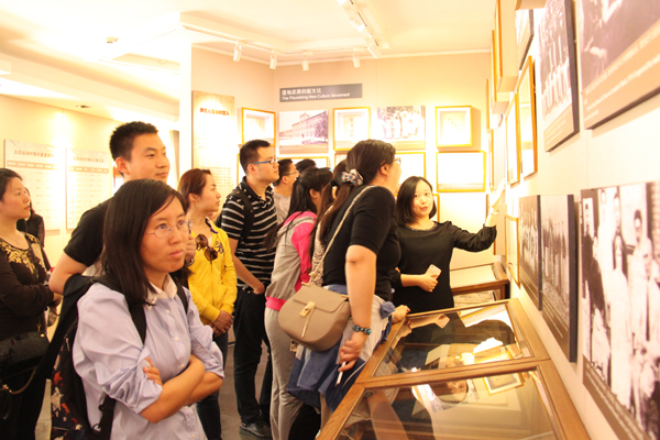 大家首先参观了北京新文化运动纪念馆。该馆复原了五四时期北大红楼的历史面貌。在这里,大家参观了陈列展览、图书馆主任室、登录室、第二阅览室、第十四书库、新潮杂志社、学生大教室等,并体验了陈独秀、蔡元培、毛泽东、李大钊等先驱在红楼工作的场景。大家被新文化运动时期“爱国、进步、民主、科学”的“五四”精神所感染,接受了生动形象的爱国主义教育。