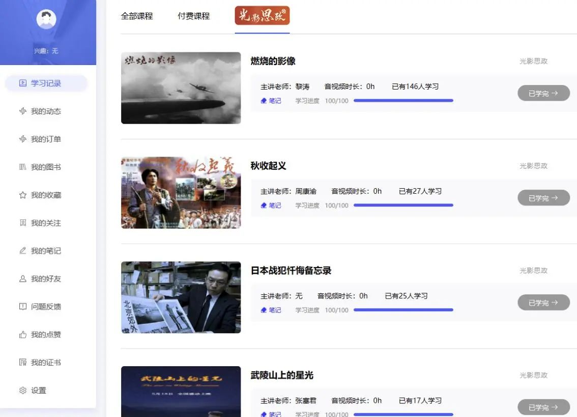 “光影思政”赏学专区界面