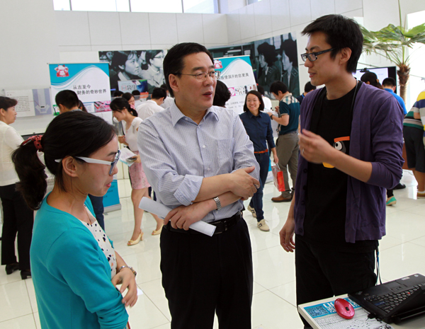 经济管理教学部的4位老师使用球王会官网定制的移动学习终端,展示了“5分钟课程”、“测评训教学模式与网络课程实现”、“西方经济学移动学习全媒体数字教材”、“投资学网络核心课程”,展现了自主学习及碎片化学习的特点,让参观者体验到了微课程内容精致、终端载体多样化、应用方便灵活等优势。