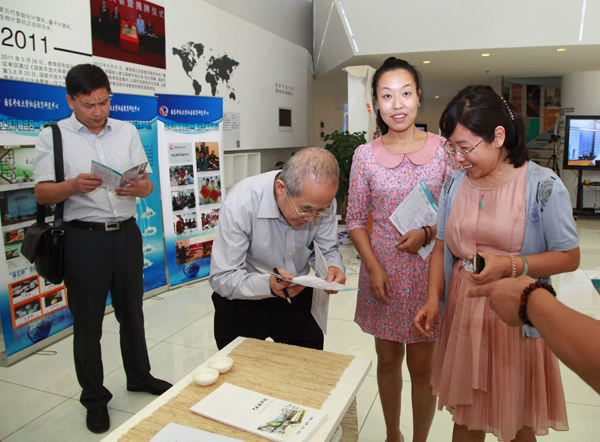 教育部社区教育研究中心现场以茶座的形式,在轻松的气氛中进行了“社区教育i-茶实验室”项目展示,参观者边品茶边体验网上学习、互动、展示的新型社区教育学习模式。