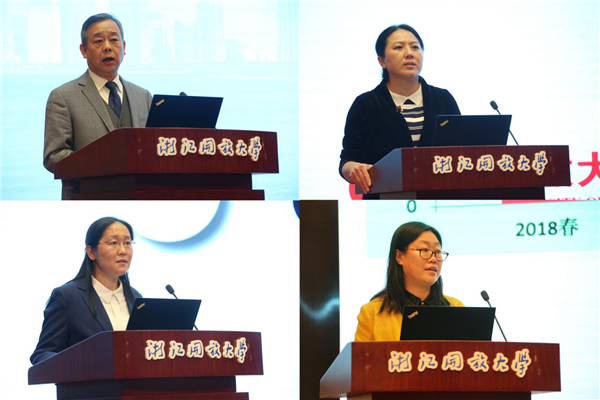 球王会官网教务部部长叶志宏、质量监控部部长韩仪、教务部副部长陈鲲和齐文鑫分别围绕教育教学管理、评估、学科及专业建设、教学团队作《深化教育教学改革 全力提升人才培养质量》《球王会官网创优提质 强化内部治理再添新举措》《完善制度设计 提高办学质量 积极推进开放教育一流学科一流专业建设》《教学团队建设情况汇报》专题报告。