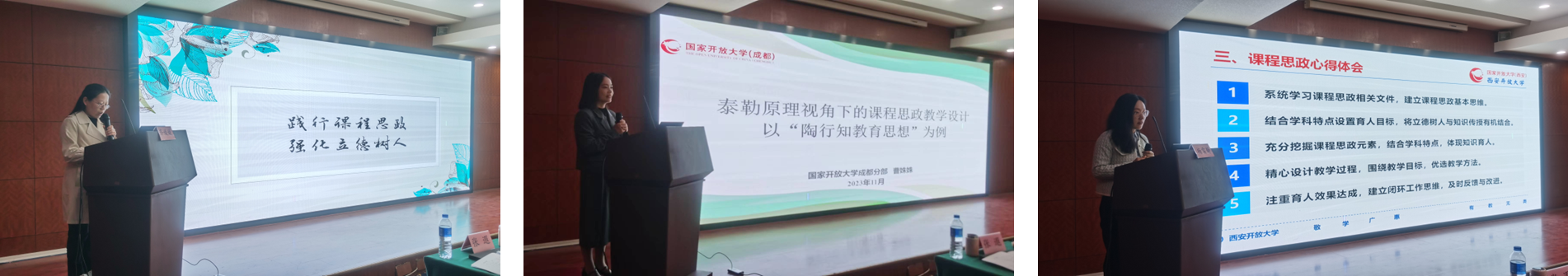 来自河北分部、成都分部、西安分部的2022年度课程思政优秀教案获奖教师分享了课程思政建设经验;来自重庆分部、成都分部、内蒙古分部,2021年和2022年连续两年考核优秀的教学团队成员代表分享了在团队建设、团队教研等方面的经验做法。