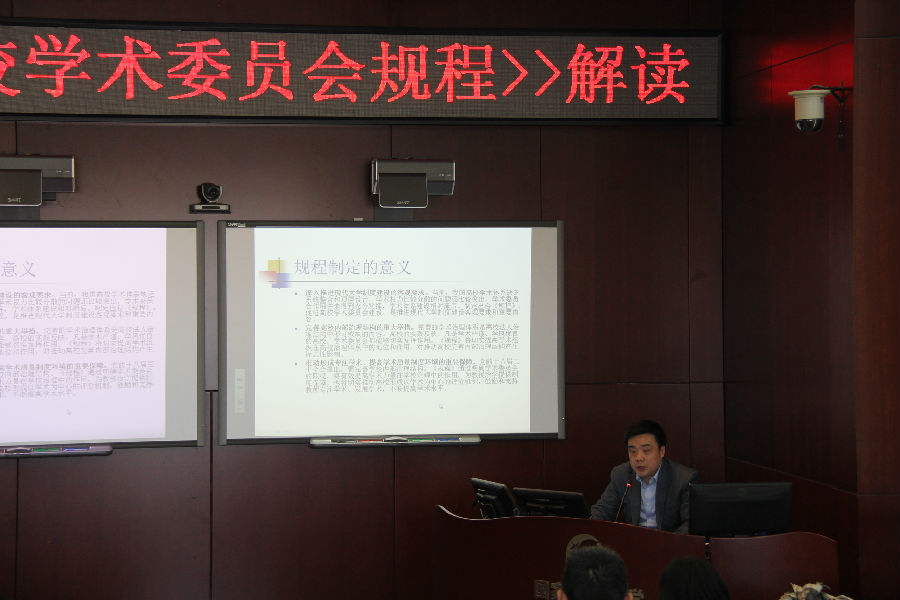 2014年2月27日,球王会官网学术委员会邀请教育部法制办公室王大泉副主任为全校教职工解读了《高等学校学术委员会规程》(以下简称《规程》)。