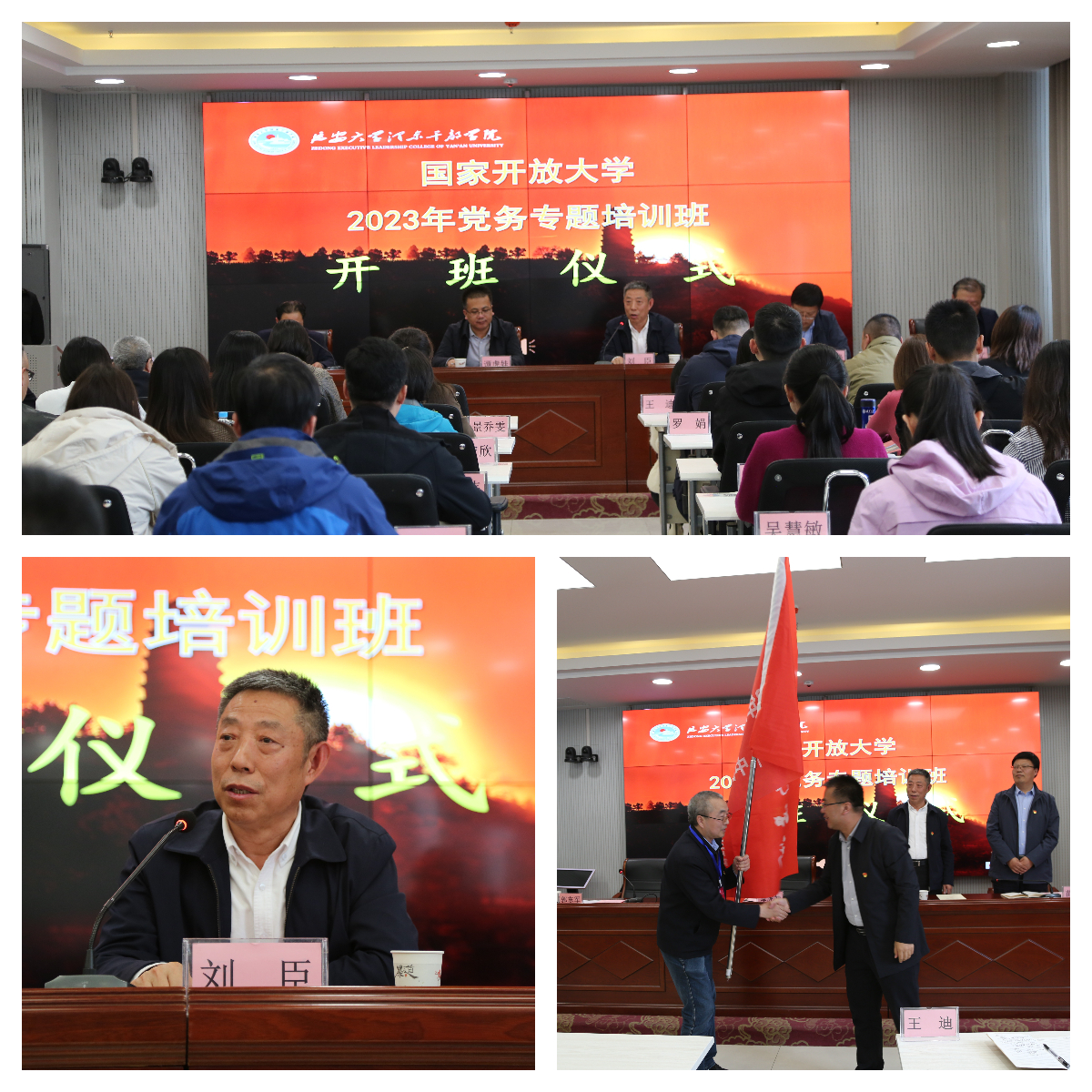 开班仪式上,刘臣作开班讲话。他强调,2023年是全面贯彻落实党的二十大精神的开局之年,也是实现办好人民满意的开放教育、建设链接世界的数字化大学、实施国家老年大学建设工程的关键之年,全校党务工作者要通过这次培训学习、传承好以坚定正确的政治方向、解放思想实事求是的思想路线、全心全意为人民服务的根本宗旨、自力更生艰苦奋斗的创业精神为主要内容的延安精神,务必不忘初心、牢记使命,铸牢对党忠诚的政治之魂;务必谦虚谨慎、艰苦奋斗,充分发挥党建引领保障作用;务必敢于斗争、善于斗争,为谱写新时代开放大学大改革大发展贡献力量。