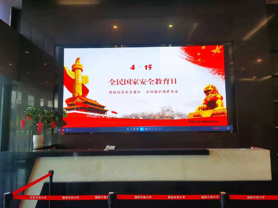 五棵松校区大屏幕循环播放安全教育日专题视频
