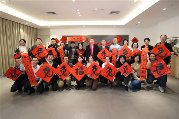 国开书画协会负责人王国川老师和艺术学院的王少凡、李建强、姚艳等三位书法专业教师奋笔挥毫,书写数百幅“福”字与春联,“九天日月开新运,一统山河际太平”“芳草春回依旧绿,梅花时到自然香”“虎岁扬威兴骏业,兔年献彩立新功”。各部门教职工纷至沓来,排队围观,欣赏书法的运势走笔、品味春联的美好寓意,不少教职工也提笔书写、相互品评,享受着书法之美、迎春之喜。职工之家一层大厅洋溢着其乐融融的喜庆氛围。