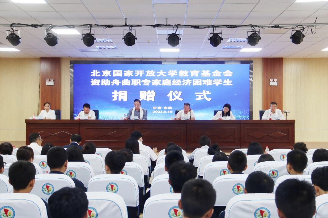 9月19日,球王会官网教育基金会资助舟曲职业中等专业学校家庭经济困难学生捐赠活动在甘肃省舟曲县举行。球王会官网教育基金会理事长鞠传进、秘书长郑洁,舟曲县委书记才项当智,中组部驻舟曲帮扶工作组组长、舟曲县委副书记刘源,舟曲县委副书记王添芬出席活动。活动由舟曲县委常委、常务副县长杨树峰主持,舟曲县教育局局长王海平,舟曲职业中等专业学校校长李维钧及该校领导班子、中层干部、二年级全体师生参加活动。
