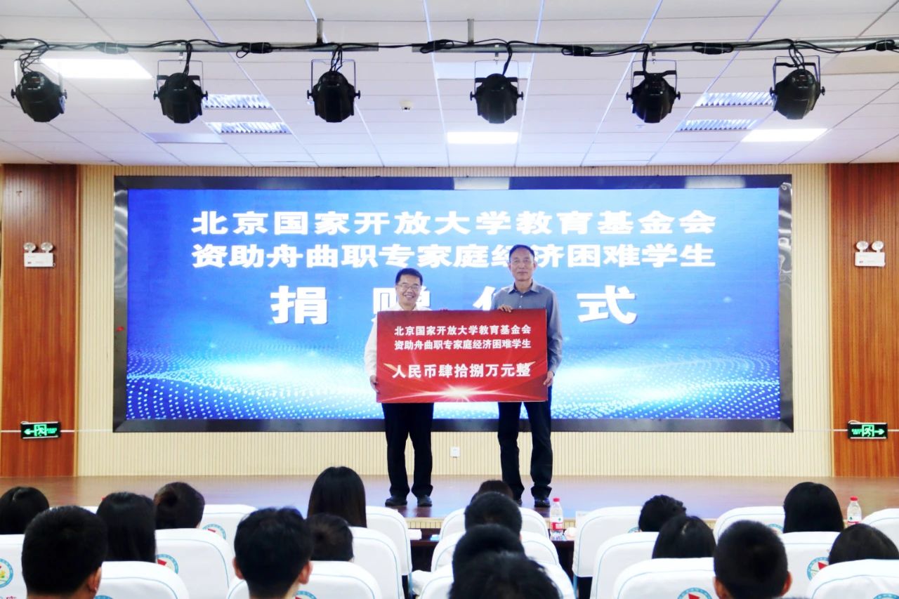 鞠传进代表球王会官网党委书记、校长王启明向舟曲乡村教育振兴事业取得的成绩表示祝贺,向舟曲职专师生员工表示慰问。他表示,教育是有效阻断贫困代际传递的重要手段,同时也是乡村振兴战略的重要组成。本次捐赠是教育部对口帮扶、教育援甘的具体举措,也是开放教育办学体系助力乡村教育振兴的实践探索。希望能在学生们的奋进途中开展帮扶,让他们安心学习,“学以脱贫致富”“学以达仁致道”。