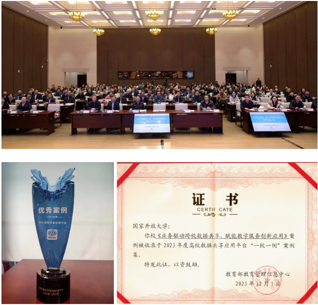 作为教育部高校数据共享第一批试点单位,学校通过高校数据共享应用平台,成功获取共享数据,积极推动在学分银行等业务场景的应用,充分吸收借鉴教育部跨区域、跨机构、跨层级的数据共享经验,打造面向开放大学办学体系的开放教育数据共建共享模式。