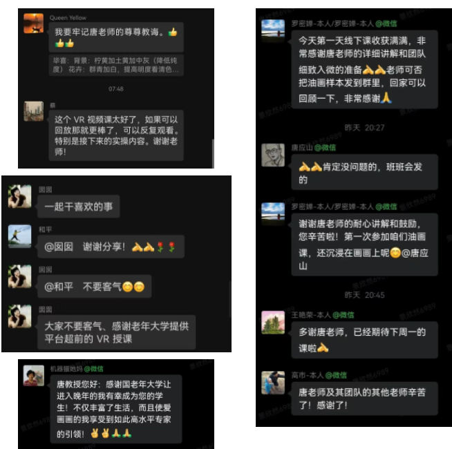 在唐教授精彩的讲授下,学员们纷纷竖起大拇指,并表示国家老年大学的前瞻性及开创性让他们看到了线上课堂的另一种可能,这样新奇的直播形式在充满趣味性的同时,也更能帮助大家细致地掌握油画知识,提高自主学习的积极性。