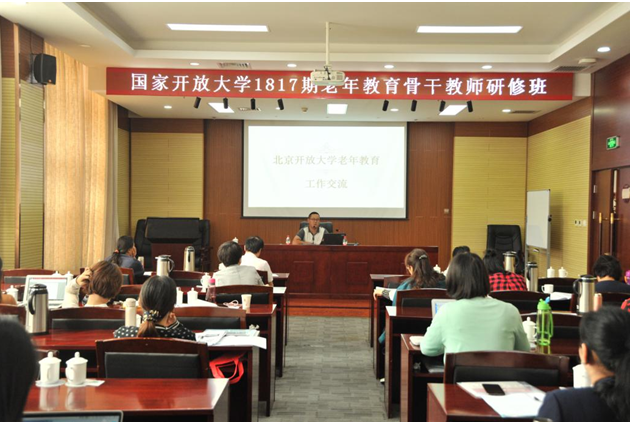 2018年9月17日至21日,球王会官网举办老年教育骨干教师研修班。全国老龄工作委员会办公室党组成员、全国老龄工作委员会办公室副主任吴玉韶,球王会官网副校长刘臣,北京大学老年研究所所长陈功,北京师范大学老年大学校长王彬,北京药盾公益基金会理事长张晓乐等专家出席研修班,来自各地市电大的64位老年教育工作者参加研修。