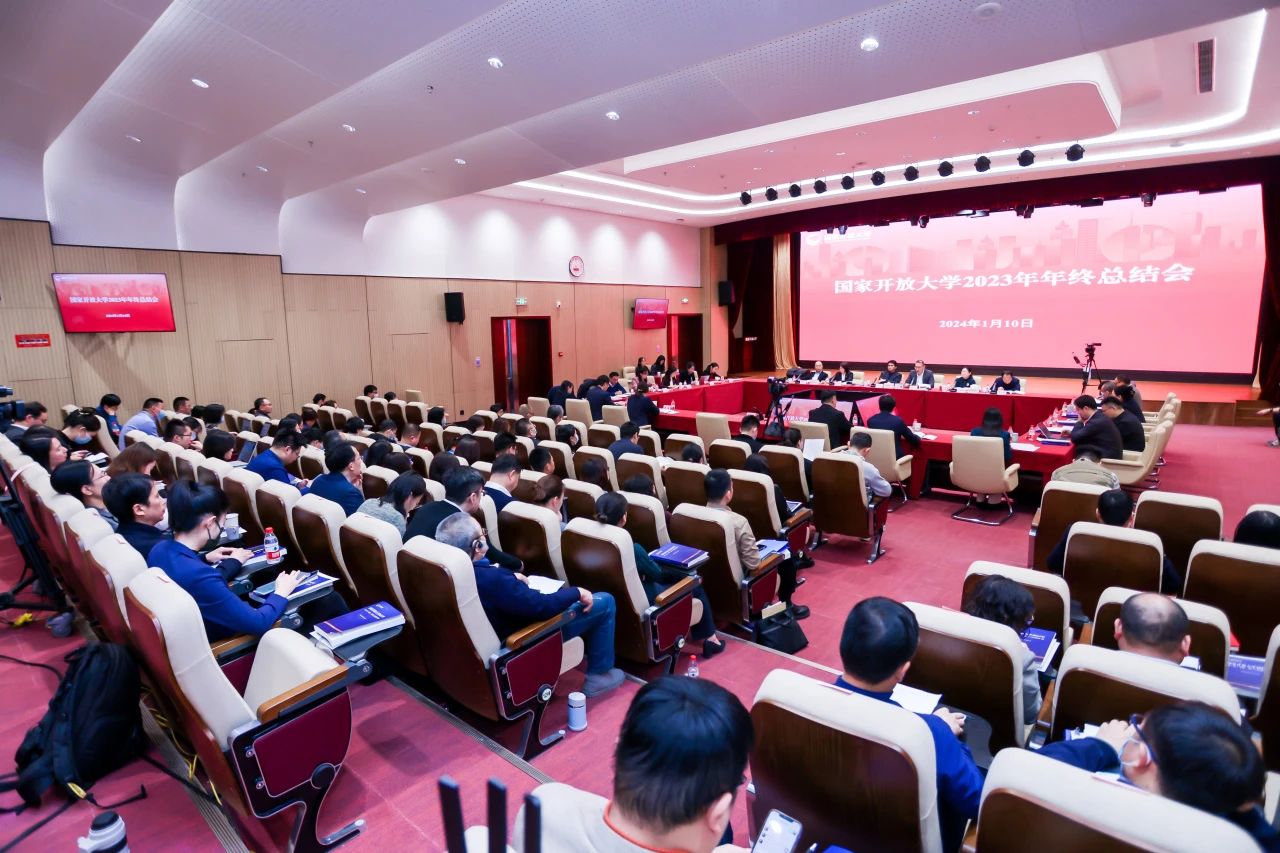 王启明代表学校党委对各单位各部门2023年一年来的辛勤工作和努力付出表示敬意和衷心感谢。他指出,本次年终总结会,既是对2023年工作的反思,也是对2024年工作的谋划。各单位各部门集中展示了2023年的成绩和亮点,有数据、有实例、有经验、有反思、有凝练,干货满满,工作成效硕果累累,改革成果可圈可点。大家讲政治、谋发展、聚重点、有亮点,各项成绩的取得是广大教职工埋头苦干、勇毅前行、团结协作的结果,充分体现了开放大学教职工想干事、能干事、能干成大事。