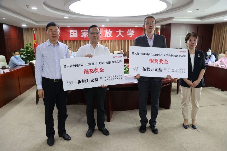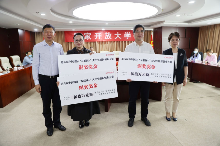 会上,刘向虹宣读了《关于表彰第六届中国国际“互联网+”大学生创新创业大赛获奖项目的通知》。两位校领导向获奖分部颁发了奖牌与奖金。