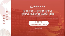 会上还介绍了非英语专业和英语专业题库建设的整体工作流程、命题程序、任务分配等方面的内容和要求,并再次强调了保密性和规范性。