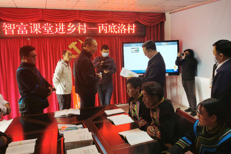 鞠传进介绍了“智富课堂”项目开展情况。他说,“智富课堂”进乡村的主要载体是“智富盒子”——一个数字化资源包,内容不仅有普通话推广的视频资源课程,还整合了思政教育、职业技能、种植技术、畜牧养殖等课程,在推广普通话的同时,还为村民提供致富脱贫技能,助力当地脱贫攻坚。