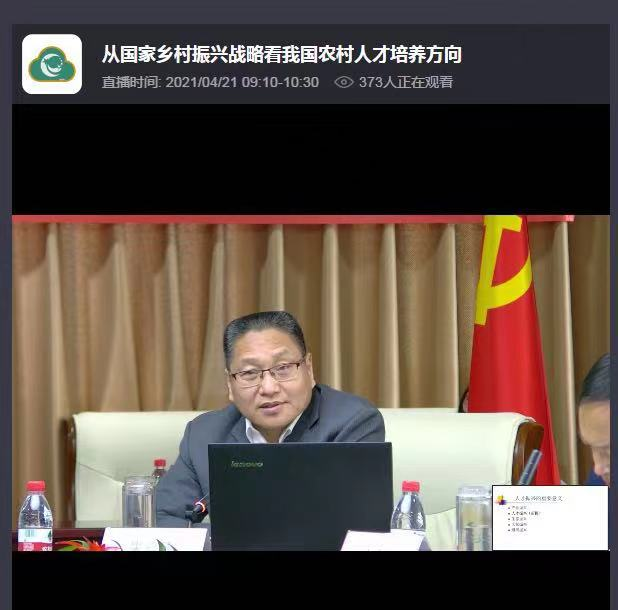 乡村振兴的前提和基础是人才振兴,为进一步提高球王会官网乡村振兴人才培养质量,2021年4月21日,中国农业大学农民问题研究所所长、农业文化研究中心主任、教授朱启臻为球王会官网体系师生作了题为《从国家乡村振兴战略看我国农村人才培养》的专题报告。