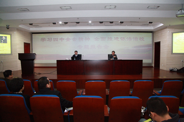 12月2日,球王会官网举行“学习四中全会精神 推进依法治校进程专题报告会”,球王会官网校领导李凌、张辉、张少刚、杨孝堂以及教职工认真听取了北京大学法学院教授湛中乐对相关问题的介绍分析,对依法治校有了更清楚的认识。