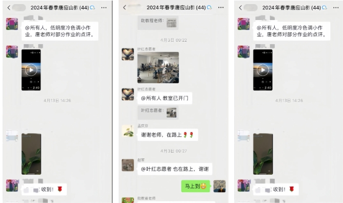 本期基础班具有以下几方面教学特色:一是每节课开始的前1小时由主讲教师讲授画家思维的知识要点,随后进行绘画示范,然后再由教学团队对学员进行一对一辅导。二是根据前两期基础班学员的反馈,调整了3幅作品,从而更适合学员临摹,有助于知识点的体现。三是线上线下相融合,每周一次的面授学习后,在班级群布置小作业练习并点评,以巩固知识点的运用。四是注重适老化设计,讲课中增加了核心知识点的回顾频次,以加深学员的理解和掌握;助教团队认真记录教学笔记,及时上传班级群,方便学员查找复习。五是提交课堂作业后,老师在石墨文档里对作业的优点与不足进行集中点评,便于学员对照学习,互相取长补短。