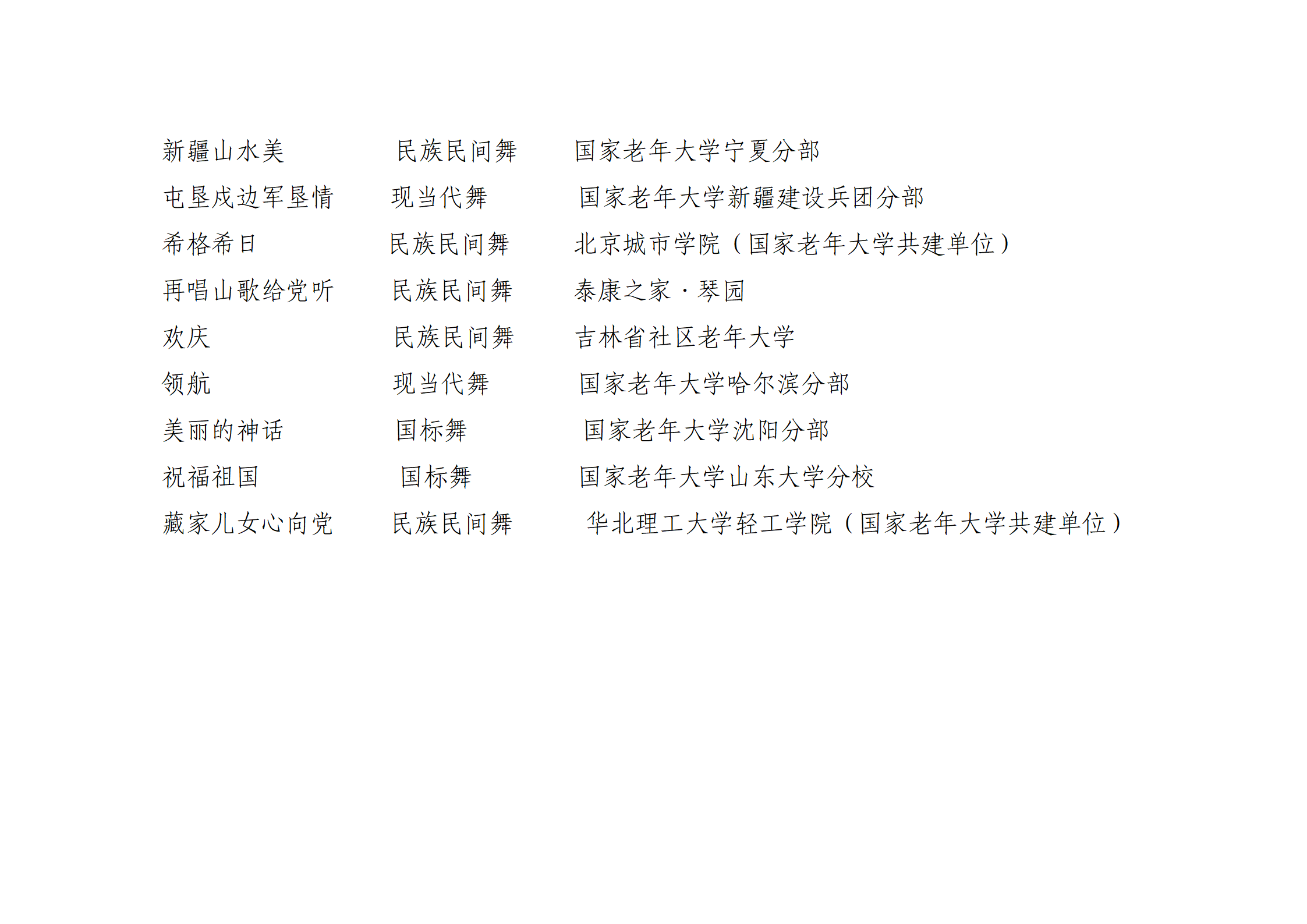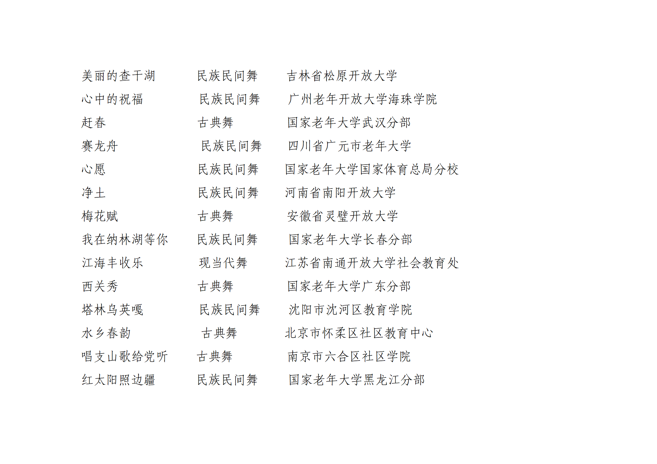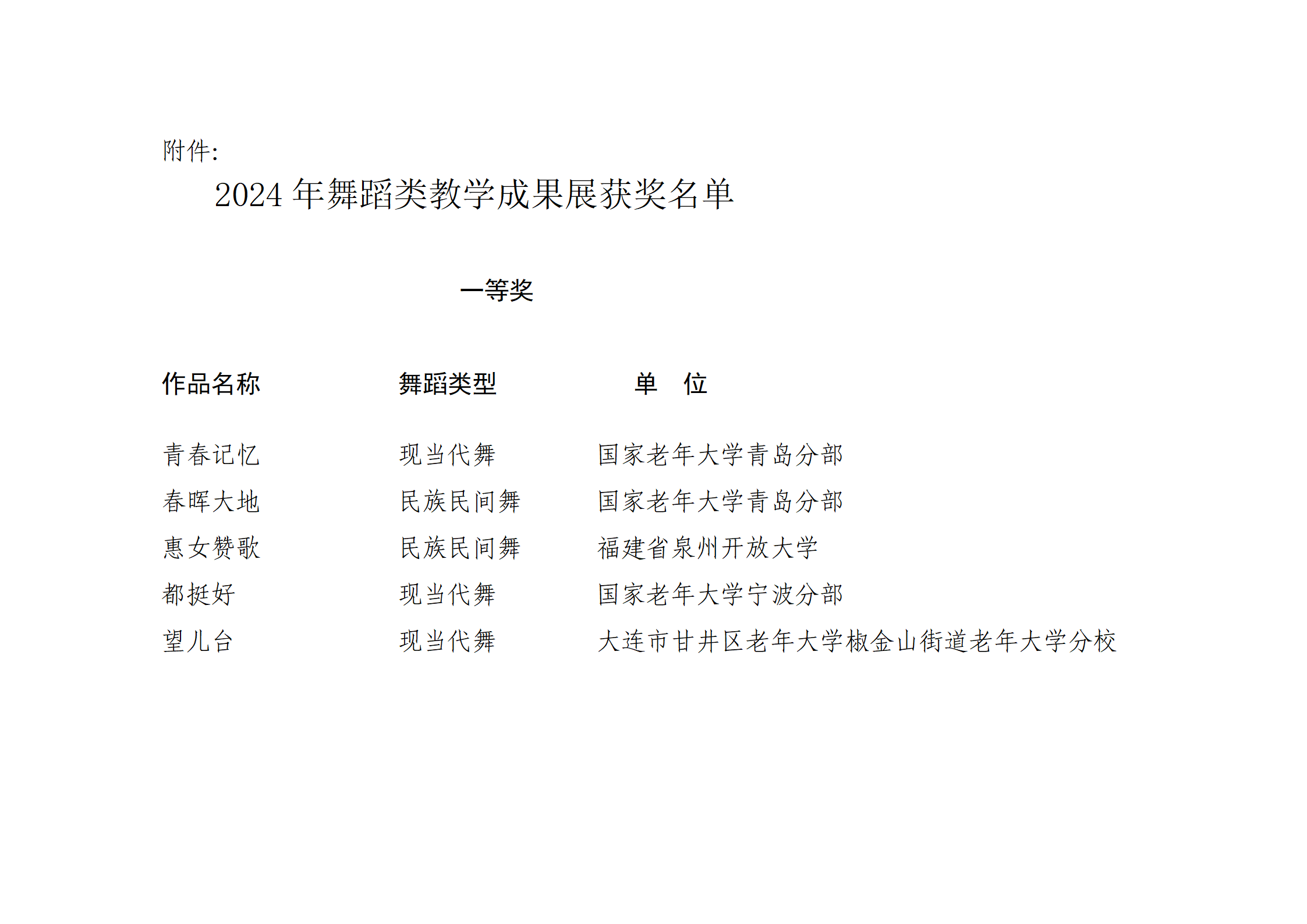 国家老年大学2024年全国老年教育舞蹈类教学成果展评选结果公示