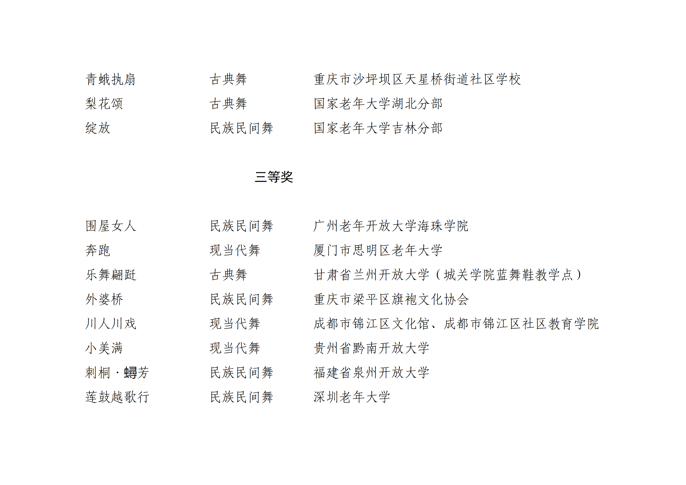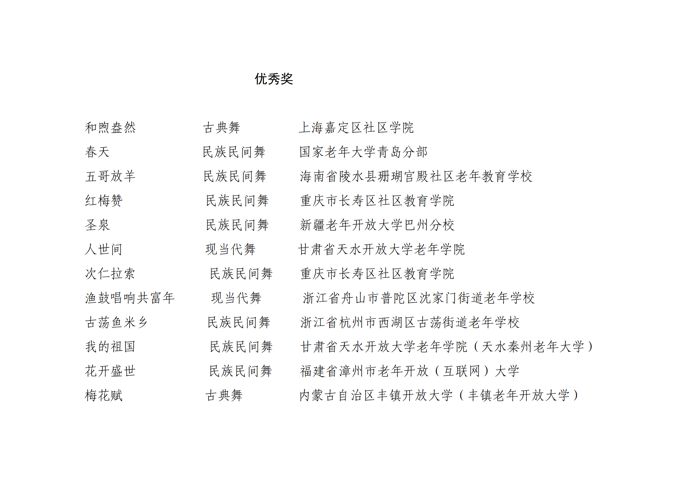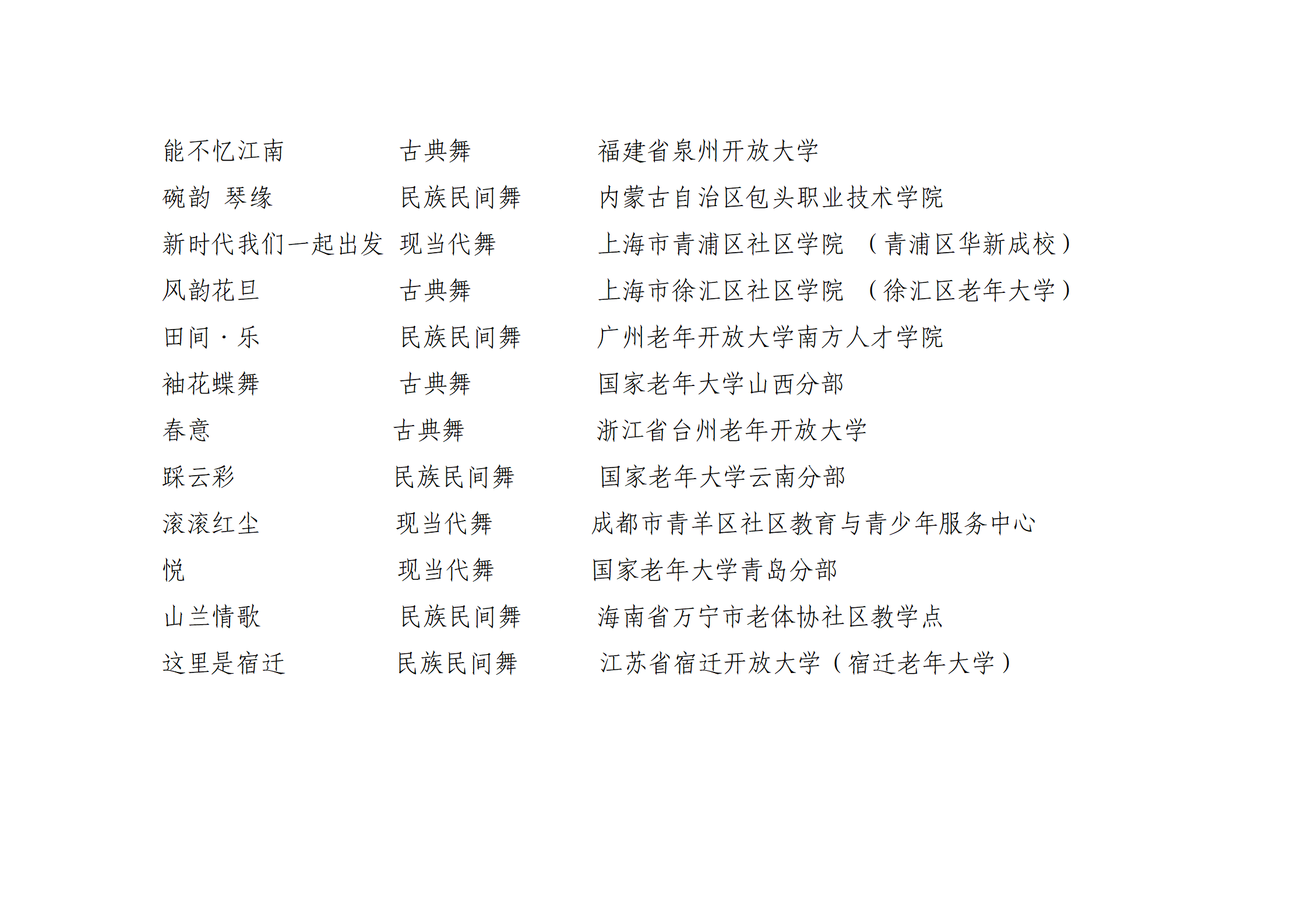国家老年大学2024年全国老年教育舞蹈类教学成果展评选结果公示