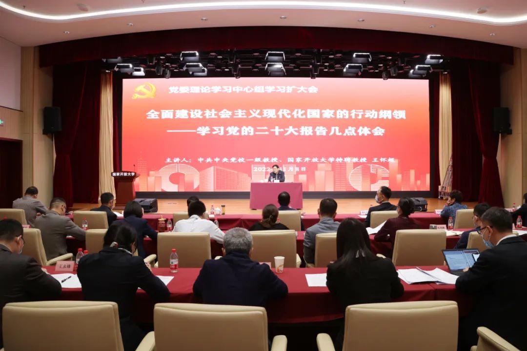11月8日下午,球王会官网召开党委理论学习中心组学习扩大会,邀请中共中央党校一级教授,球王会官网特聘教授王怀超围绕党的二十大精神作专题报告。